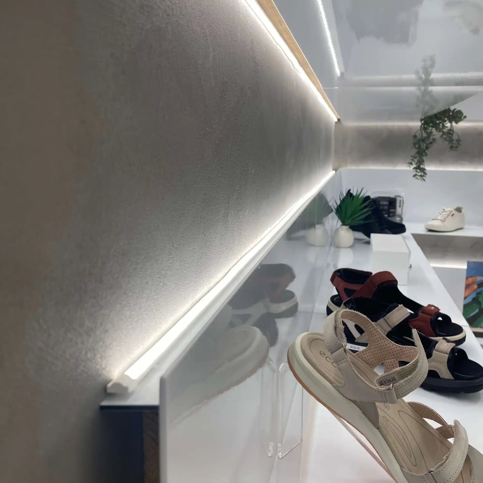 We were delighted to supply Footgear Queens Plaza with our 3000K Warm White Dot Less LED Strip. They used these strips creatively to illuminate both the top and bottom of each shelf, effectively showcasing their stunning shoe collection. It's a shining example of how our lighting solutions can add a touch of magic to product displays.