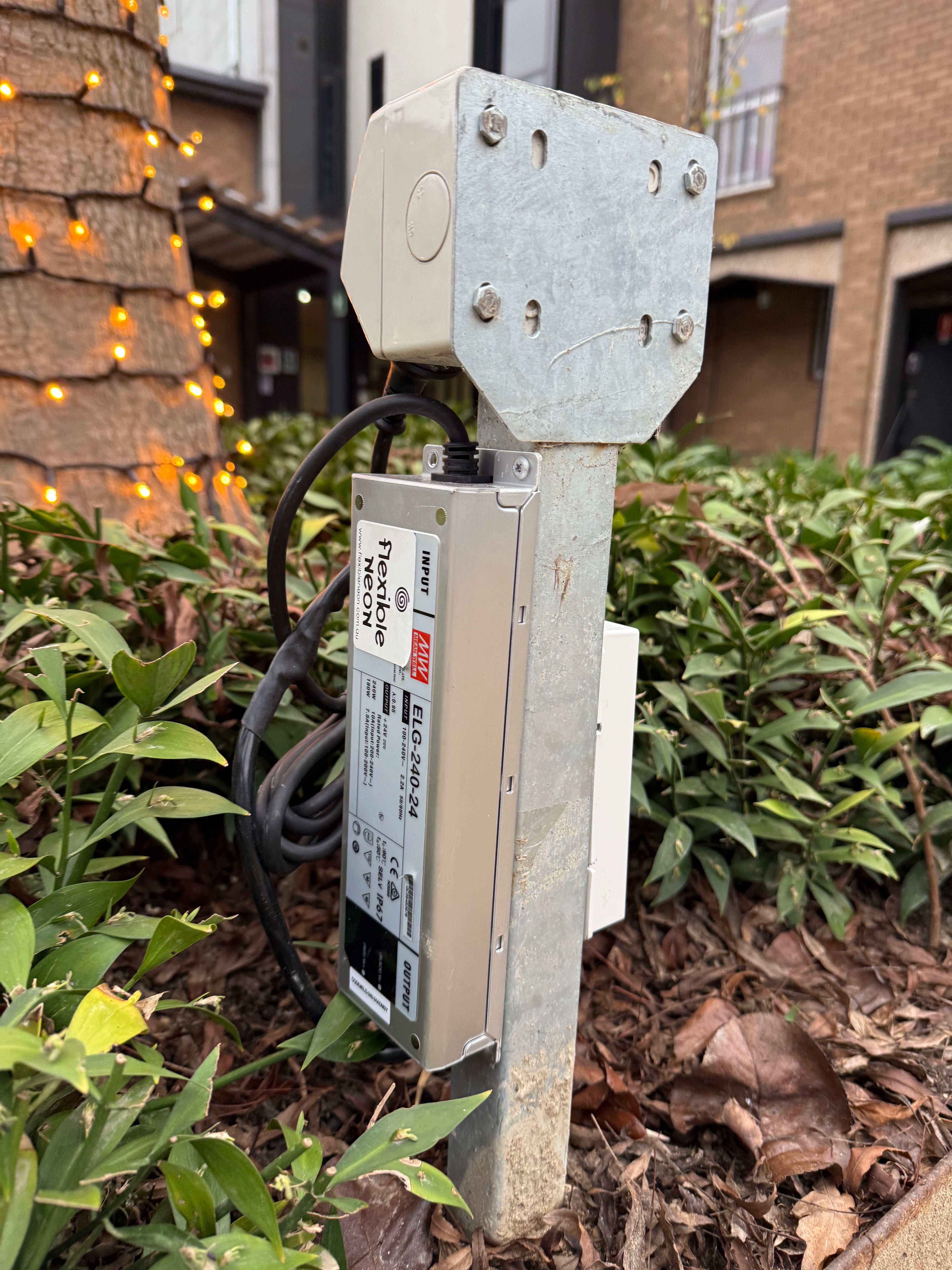 Our Brisbane-based team made the special trip to install two large feature trees wrapped entirely in our commercial-grade Warm White Fairy Lights. With hundreds of metres of lighting carefully strung to highlight the natural form of each tree, the result was nothing short of enchanting.